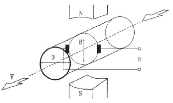 Specially in the case of electromagnetic flowmeter’s operation, conductive liquid flowing through pipe of the instrument serves as the conductor. A pair of coils generates a uniform magnetic field perpendicular to the flow direction. The magnetic field lines would be cut through by flow. Induced electromotive force is therefore generated and subsequently sensed by a pair of metal electrodes and processed into standard electrical signal output.